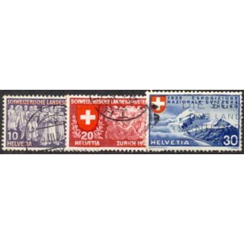 SUIÇA - Y 0326/328 (1939) EXPOSIÇÃO NACIONAL DE ZURICH COM LEGENDA EM ALEMÃO - 3 SELOS USADOS