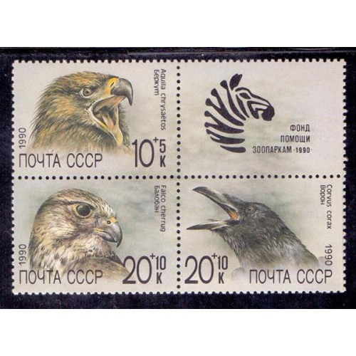 FAUNA - ÁGUIA, FALCÃO E CORVO - 4 SELOS - UNIÃO SOVIÉTICA - 1990