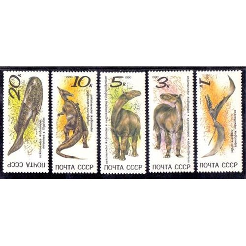 Etiquetas: RÚSSIA - UNIÃO SOVIÉTICA - 1990 - FAUNA PRÉ-HISTÓRICA - 5 SELOS