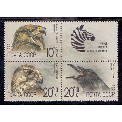 Etiquetas: UNIÃO SOVIÉTICA - 1990 - FAUNA - PÁSSAROS - ÁGUIA - FALCÃO - CORVO - QUADRA - RÚSSIA