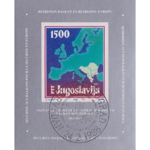 Etiquetas: YUGOSLAVIA - 1988 - USADO - CONFERÊNCIA DOS PAÍSES BALCÃNICOS - MAPA - YT-BL-030