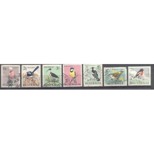 Etiquetas: AUSTRALIA - Y 0292/298 (1963-1965) - FAUNA SÉRIE CORRENTE : RAINHA ELIZABETH II E AVES- SÓ AS 7 AVES DA SÉRIE - 7 SELOS USADOS