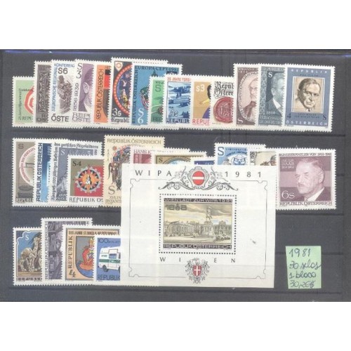 ÁUSTRIA - ANO COMPLETO - 1981 - MINT - 30 SELOS + 1 BLOCO - 30,20 EUROS
