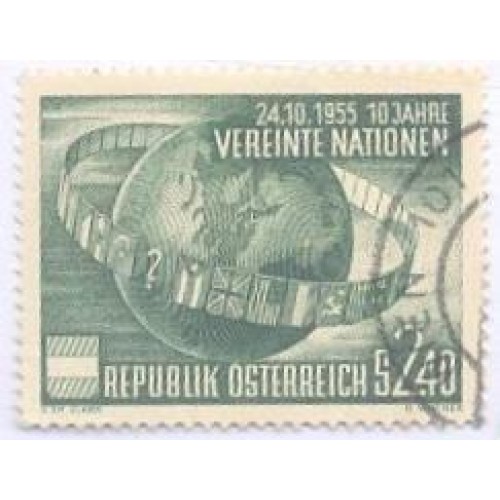 Etiquetas: ÁUSTRIA - USADO - 1955 - 10º ANIVERSÁRIO DA ONU - Y 855