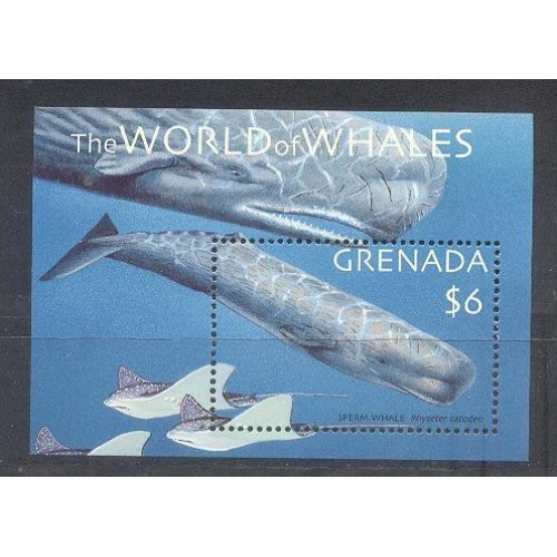 GRENADA - Y B-618D (2001) FAUNA : CETÁCEO -BALEIAS FHYSETERCATODEN -BLOCO MINT