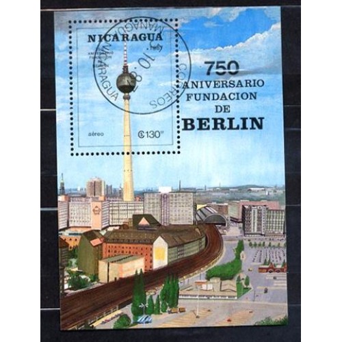 Etiquetas: NICARAGUA - Y B-180 DO ANO 1987 - 750 º ANIVERSÁRIO DA FUNDAÇÃO DE BELIN - TORRE DA ANTENA DA RÁDIO BERLIN - BLOCO USADO