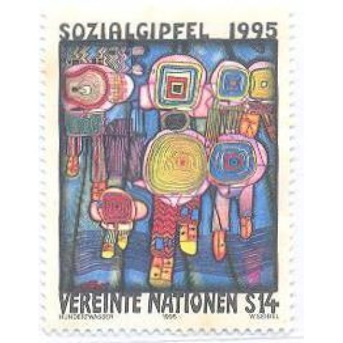 Etiquetas: ONU - 1995 - QUADRO DE HUNDERWASSER - SELO NOVO COM PONTOS DE FERRUGEM - T 199