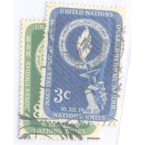 Etiquetas: ONU NEW YORK - 1955 - USADO - DIA DOS DIREITOS HUMANOS - SÉRIE 2 SELOS - Y 38/39