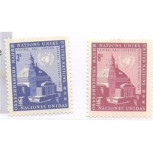 ONU NEW YORK - 1958 - MINT - 10º ANIVERSÁRIO GERAL NO CENTRAL HALL - SÉRIE 2 SELOS - Y 58/59