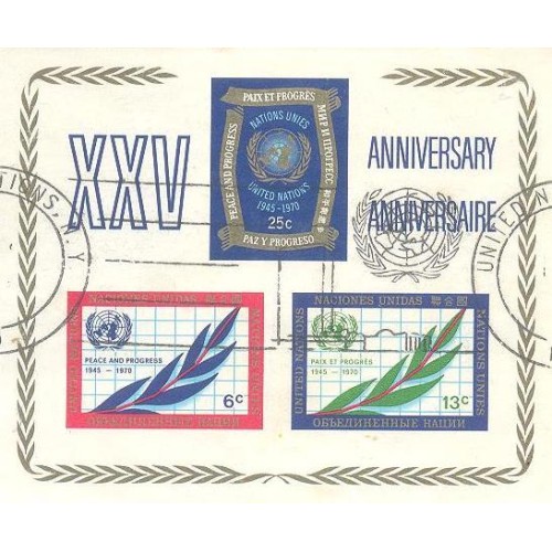 ONU NEW YORK - 1970 - USADO - 25 ANIVERSÁRIO DA ONU - BLOCO - Y BL-05