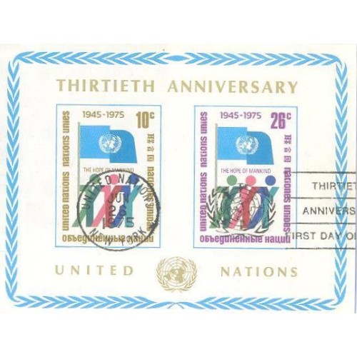 ONU NEW YORK - 1975 - USADO - XXX ANIVERSÁRIO DA ONU - Y BL-6