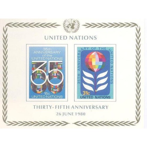 Etiquetas: ONU NEW YORK - 1980 - 35º ANIVERSÁRIO DA ORGANIZAÇÃO DAS NAÇÕES UNIDAS - Y BL-07
