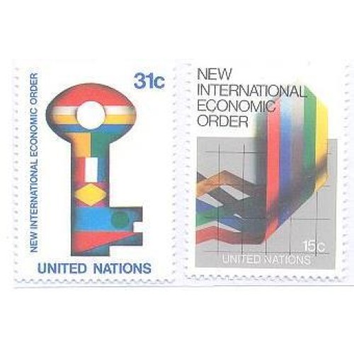 Etiquetas: ONU NEW YORK - 1980 - MINT - NOVA ORDEM ECONÔMICA INTERNACIONAL - GRÁFICO E CHAVE FORMADA POR BANDEIRAS - SÉRIE 2 SELOS - Y 0308/09