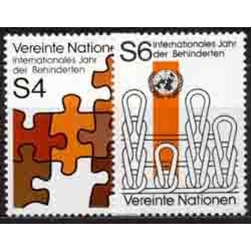 Etiquetas: ONU VIENA - Y 017/18 (1981) ANO INTERNACIONAL DAS PESSOAS PORTADORAS DE DEFICIÊNCIA FÍSICA OU MENTAL -SÉRIE 2 SELOS MINT