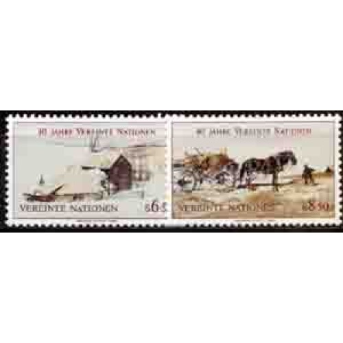 ONU VIENA - Y 051/52 (1985) 40º ANIVERSÁRIO DA ONU - PINTURAS, CAVALO SÉRIE COM 2 SELOS MINT