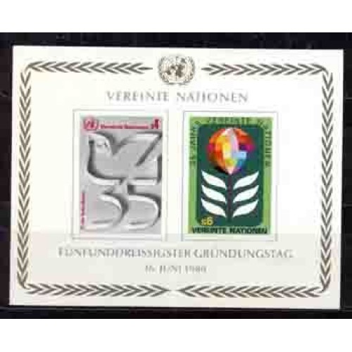 Etiquetas: ONU VIENA - Y B-001 (1980) 35º ANIVERSÁRIO DA ONU- ALEGORIA COM POMBA DA PAZ E GLOBO TERRESTRE COM LEVE PONTO DE FERRUGEM