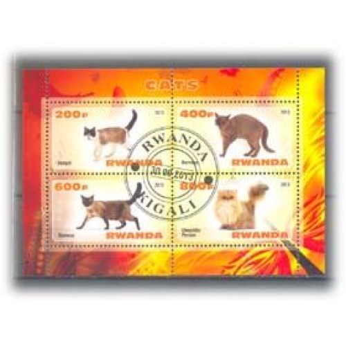 RWANDA - FAUNA - GATOS - BLOCO CARIMBADO