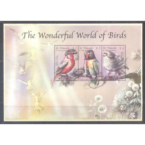 ST. VINCENT - PÁSSAROS - BLOCO COM 3 SELOS