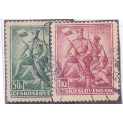 Etiquetas: TCHECOSLOVAQUIA - 1937 - USADO - 20º ANIVERSÁRIO DA BATALHA DE ZBORVOV - SÉRIE 2 SELOS - YT-325/26