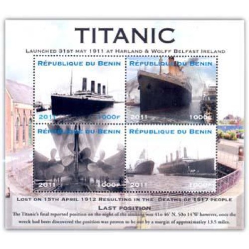 Etiquetas: BENIN - ANO 2011 - NAVIO TITANIC I - SERIE 4 SELOS USADOS EMITIDOS EM FOLHINHA