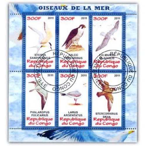 CONGO - AVES MARINHAS - SERIE 6 SELOS USADOS EMITIDOS EM FOLHINHA