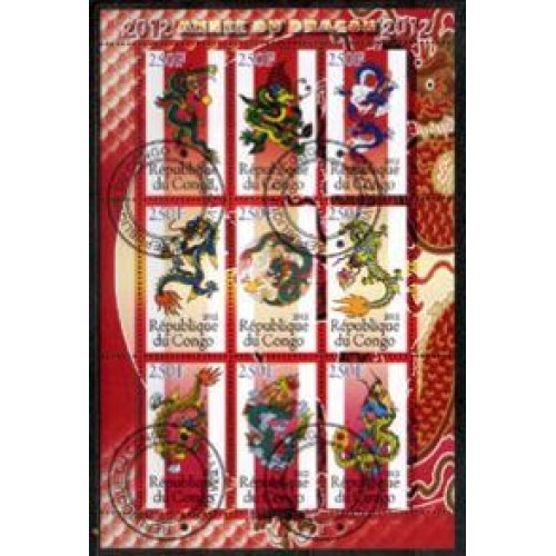 Etiquetas: CONGO - FAUNA - ASTROLOGIA - ANO LUNAR CHINES - ANO DO DRAGÃO - SERIE 9 SELOS USADOS EMITIDOS EM FOLHINHA