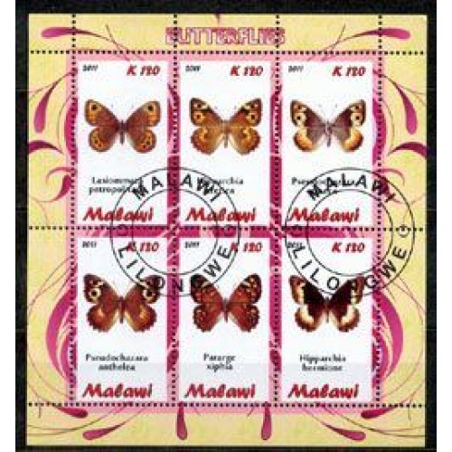 MALAWI FAUNA BORBOLETAS - SERIE 6 SELOS USADOS EMITIDOS EM FOLHINHA