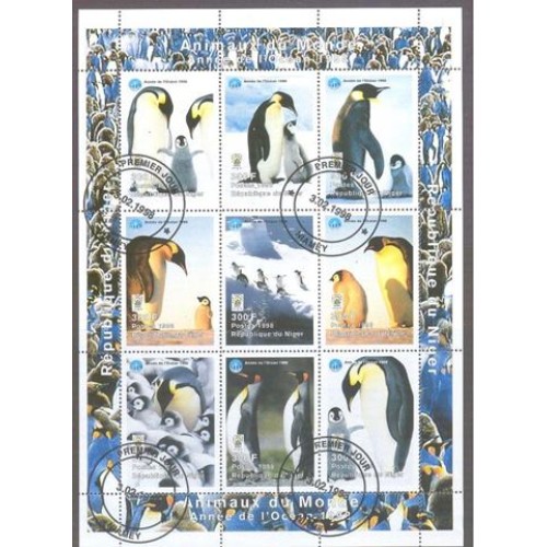 NÍGER - PINGUINS - BLOCO COM 9 SELOS