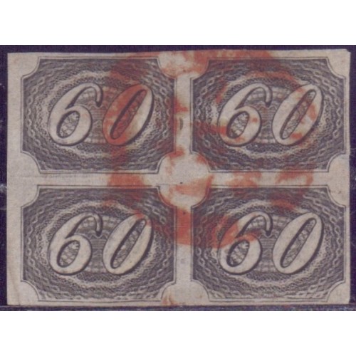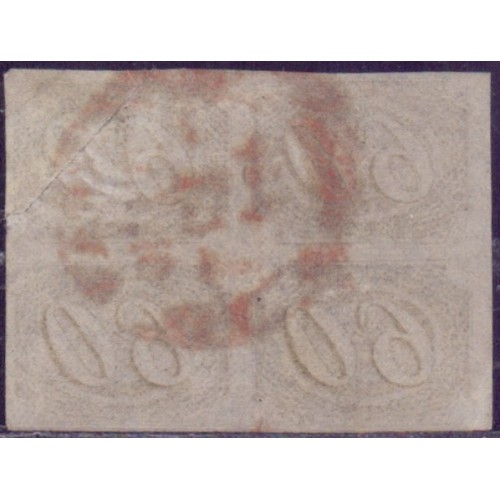 I-06 - INCLINADO - 60 RÉIS - QUADRA - TIPO IIa - CARIMBO VERMELHO - ÓTIMAS MARGENS – CANTO SUPERIOR RASGO RESTAURADO TRABALHO PROFISSIONAL - MÚLTIPLOS INCLINADOS SÃO MUITO ESCASSOS - RHM 2.000 UFS