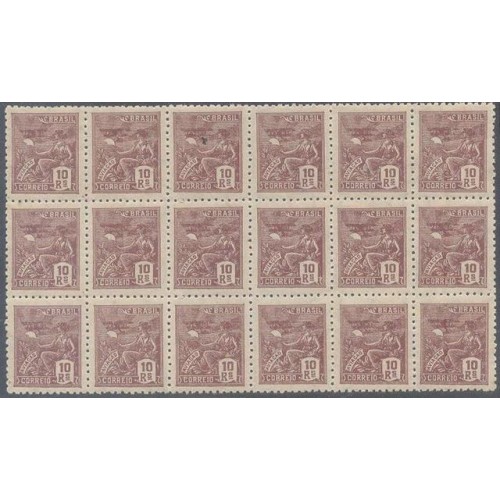R-318A - 1940 - FILIGRANA VERTICAL CASA+DA+MOEDA+BRASIL (O) - BLOCO COM 18 SELOS - NOVO - GOMADO - RHM R$ 6.750,00 (1350 UFs X R$ 5,00)