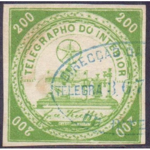 Etiquetas: T-08 – 1869 – TELÉGRAFO 200 RÉIS – ALGARISMOS REDONDOS – CARIMBADO - PERFEITO – LINDAS MARGENS