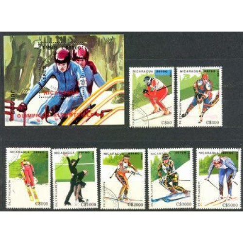 NICARÁGUA - Y A-1293/99+BLOCO DO ANO 1989- OLIMPÍADAS DE INVERNO DE ALBERTVILLE NA FRANÇA: PATINAÇÃO ARTÍSTICA-HOCKEY NO GELO-E OUTROS -SÉRIE 7 SELOS E BLOCO USADOS