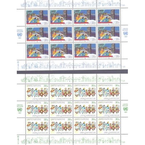 Etiquetas: ONU NEW YORK - 1987 - DIA DA ONU -2 MINI FOLHA COM 12 SELOS EM CADA - COM PONTOS DE FERRUGEM - Y 508/09