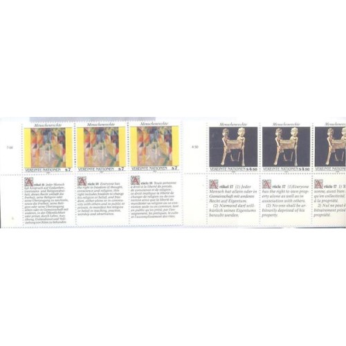 Etiquetas: ONU VIENA - 1991 - MINT - DECLARAÇÃO DOS DIREITOS DO HOMEM - SÉRIE DE 2 TRIPTICOS C/ O ARTIGO N. 17 E 18 DA DECLARAÇÃO EM INGLÊS, ALEMÃ E FRANCÊS - Y 131/36