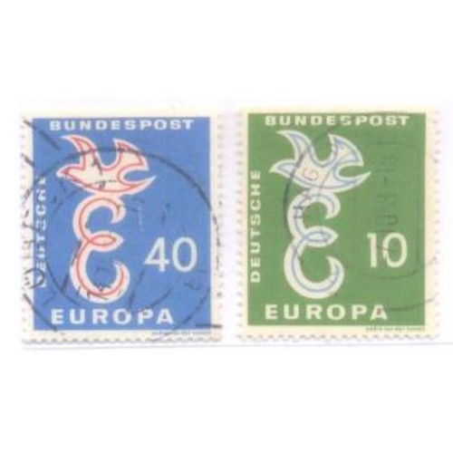 Etiquetas: ALEMANHA FEDERAL - 1963 - USADO - TEMA EUROPA - LETRAS DA SIGLA CEPT - DENTRO DE QUADRADINHOS - SÉRIE 2 SELOS