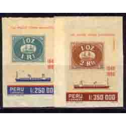 Etiquetas: PERU - Y 942/943 (1990) SESQUICENTENÁRIO DA COMPANHIA DE NAVEGAÇÃODE VAPORES DO PACÍFICO-SILHUETA DE BARCO E SELO SOBRE SELO - SÉRIE 2 SELOS AUTO ADESIVOS NOVOS