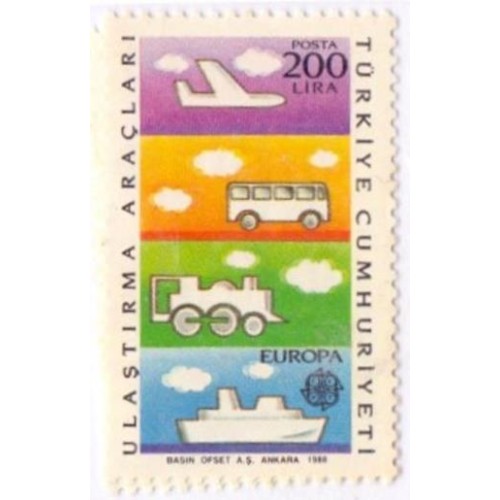 TURQUIA - 1988 - MINT - TEMA EUROPA TRANSPORTE E COMUNICAÇÃO - AVIÃO, ÔNIBUS, TREM, NAVIO EM SELOS NO OUTRO COMPUTADOR E TELEFONE - 2 SELOS - YT-2557/558