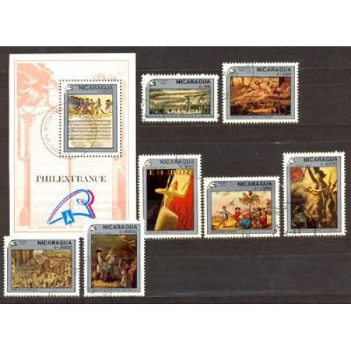 NICARÁGUA - Y 1515+AE+BLOCO DO ANO 1989- FILEX FRANCE E BICENTENÁRIO DA REVOLUÇÃO FRANCESA : HINO : A MARSELHESA- CENAS DA REVOLUÇÃO: TOMADA DA BASTILHA E OUTRAS- SÍMBOLOS DA REVOLUÇÃO -SÉRIE 7 SELOS E BLOCO USADOS