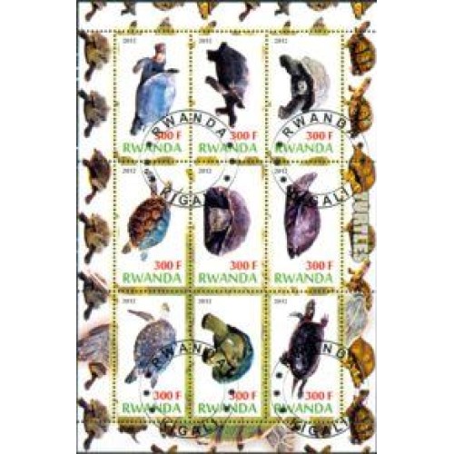 Etiquetas: RWANDA - TARTARUGAS - SÉRIE COM 9 SELOS USADOS EMITIDOS EM FOLHINHA