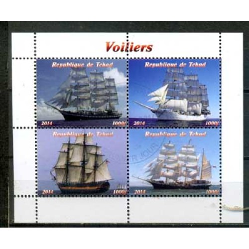 Etiquetas: TCHAD - VELEIROS 2014 - BLOCO COM 4 SELOS - CARIMBADO