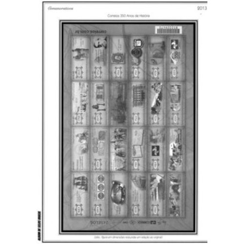 661: Bloco Correio 350 anos e os 3 selos destacados do bloco.