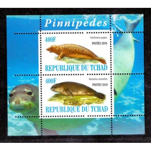 TCHAD - 2010 - FAUNA MARINHA - FOCAS - LINDO BLOCO COM 2 SELOS